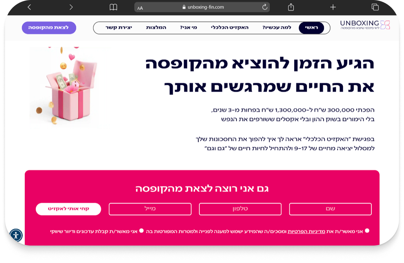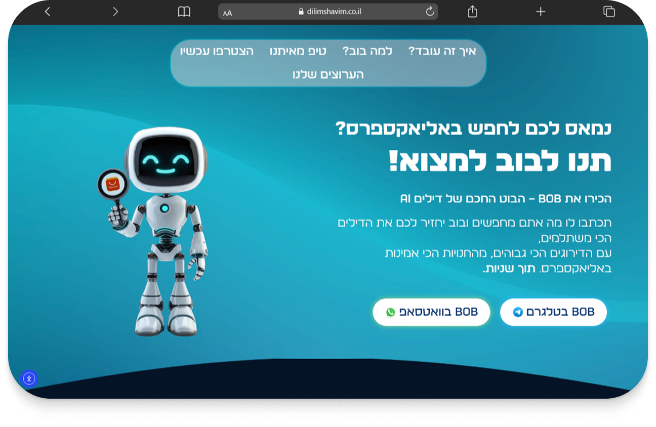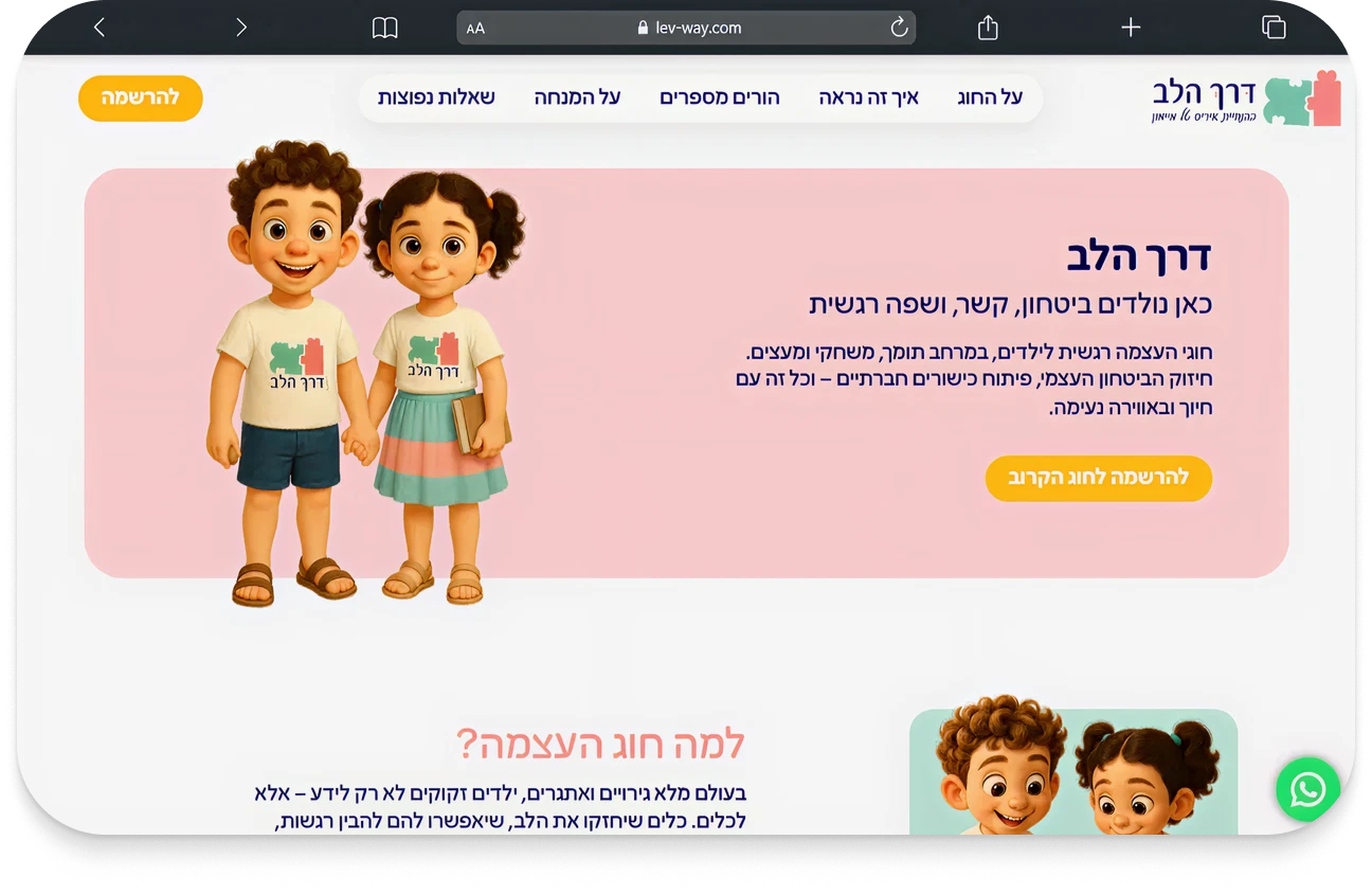 אני כאן כדי לוודא שהאתר שלכם יעזור לזה להגיע לכמה שיותר אנשים, בעיצוב מדויק, נעים ושעובד כמו שצריך.